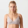 Corpiño post-operatorio sin taza de microfibra con algodón interno y borche delantero.