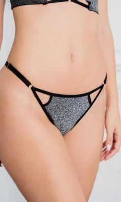 CONJUNTO BUSTIER TAZA SOFT Y COLA LESS CON TIRAS CRUZADAS DE LUREX