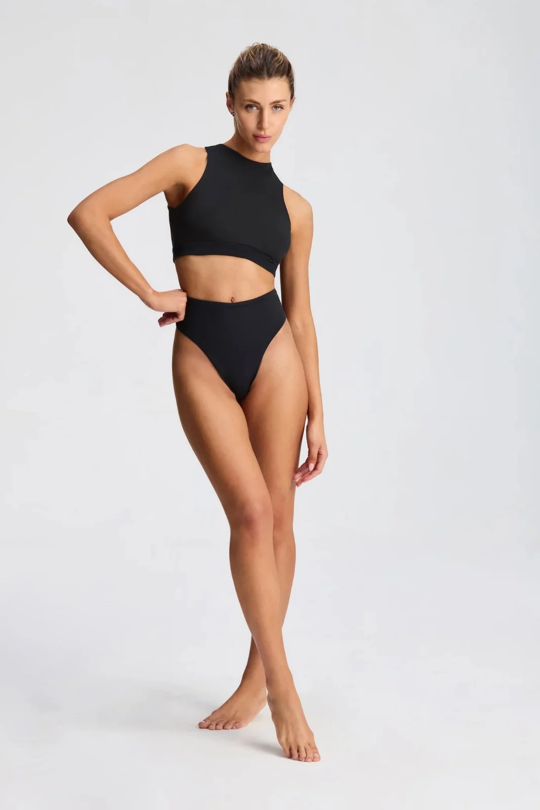 Conjunto de algodón y lycra corte americano y cola less tiro alto